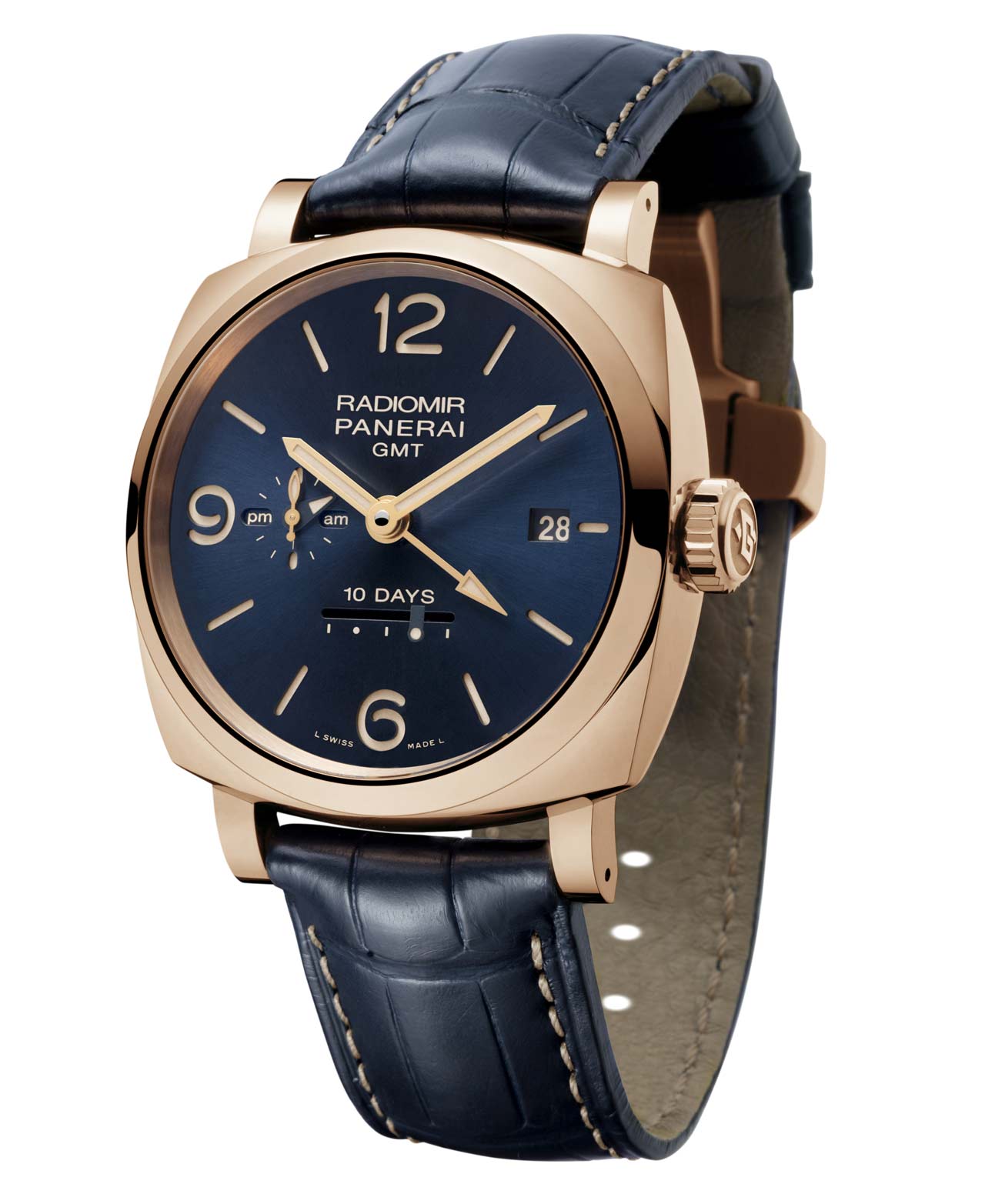 Panerai 18K Rose Gold Radiomir 1940 10 Days GMT ORO ROSSO Blue Very well made.