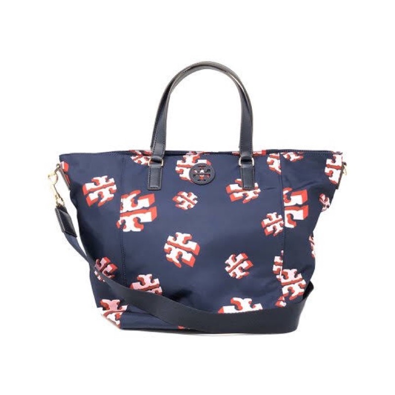 Tas TB original Tory Burch nylon printed small tote in crazy logo all over blue Very well made.