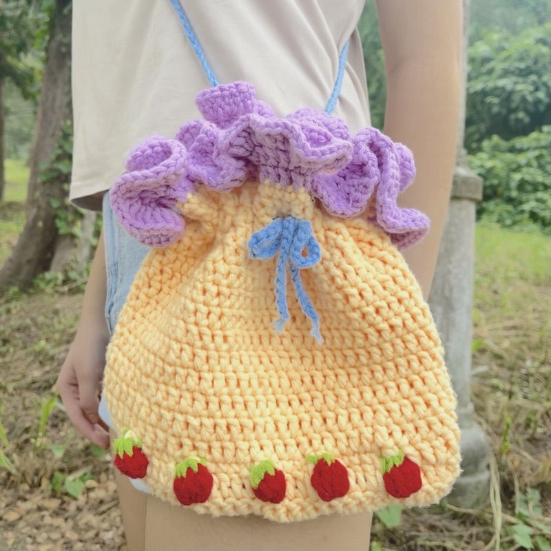 2023 Novelty Handmade Strawberry Knitted Crossbody Bag DIY Personalized Crochet Wool Small Satchel Bag Cartoon Cute Sling Purses Very well made.