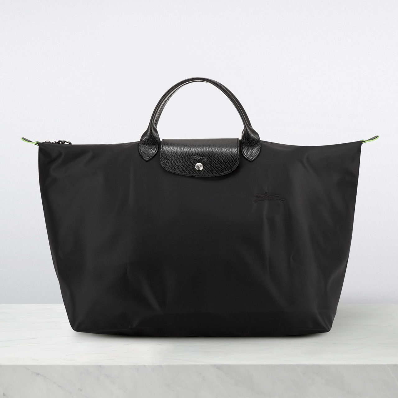 Longchamp Le Pliage Green Recycled Canvas Large Travel Bag Black Very well made.