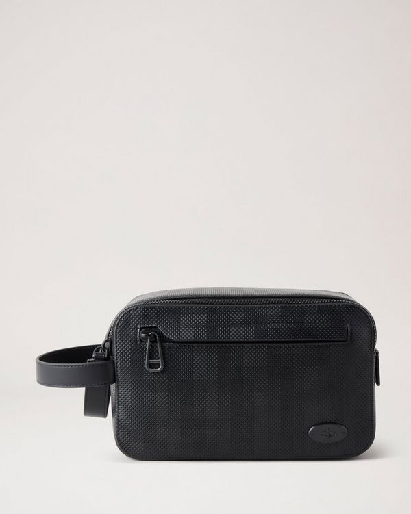 Double Zip Wash Case Brushed Black Perforated Leather Men Very well made.
