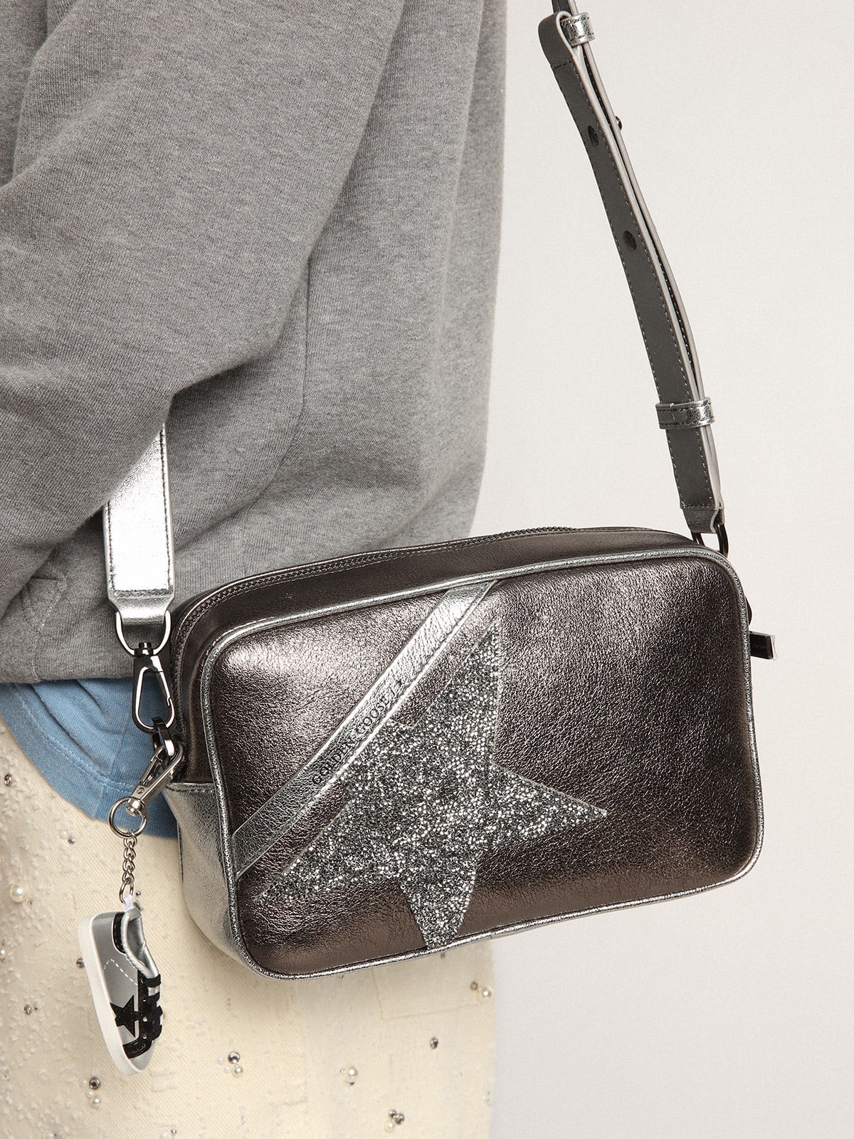 Women s Star Bag in silver leather with Swarovski crystal star Very well made.