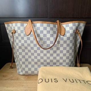 LOUIS VUITTON Neverfull MM Damier Azur Shoulder Bag White Very well made.