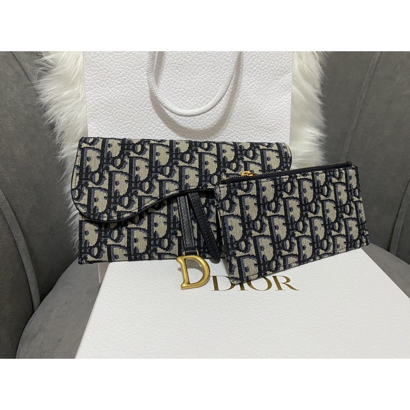 Dior Saddle Wallet Oblique 6 Card Slot Blue in Jacquard with Very well made.