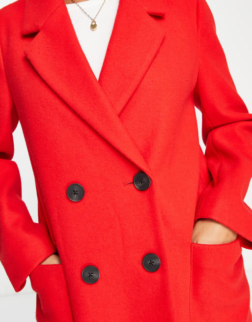 Stradivarius Manteau boutonn aspect laine Rouge Very well made.