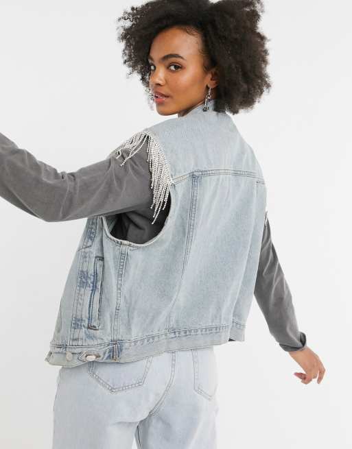 Signature 8 Veste en jean sans manches oversize franges orn es Very well made.