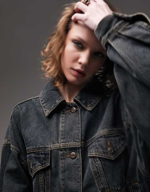 Topshop Veste en jean coupe ballon Bleu fonc d lav effet Very well made.