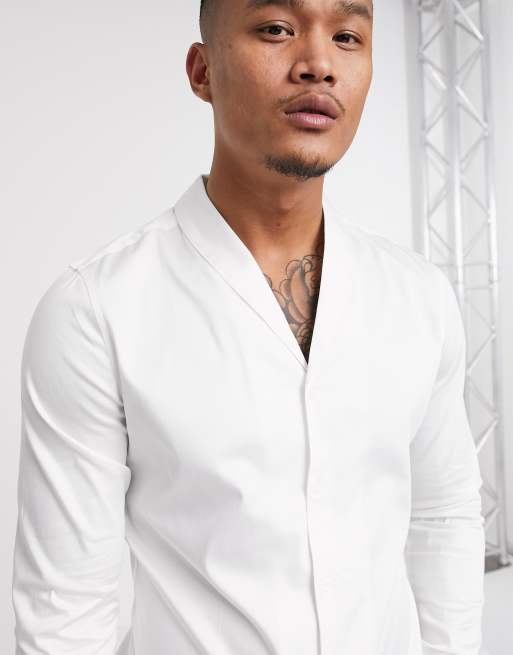 ASOS DESIGN Premium Chemise ajust e col ch le en satin Blanc Very well made.