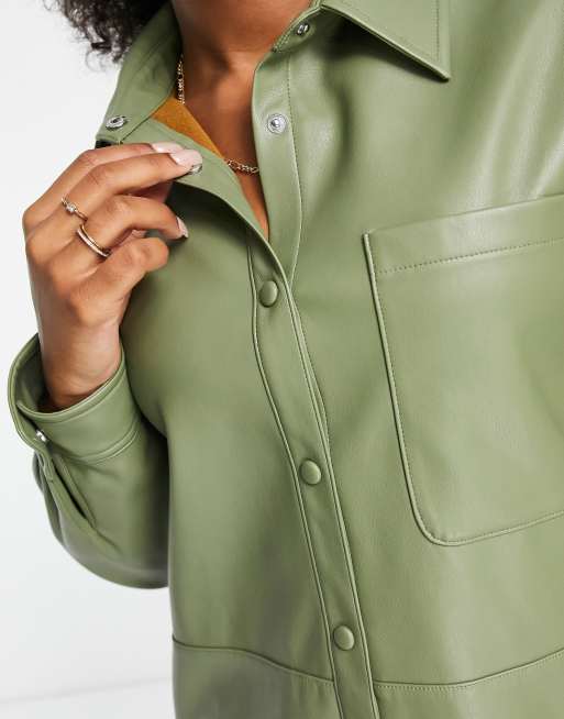 Stradivarius faux leather shirt in khaki Very well made.