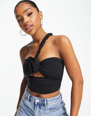 Pull Bear one shoulder cropped top with floral detail in black ASOS Very well made.