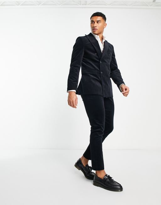 Selected Homme Veste de costume cintr e en velours c tel double boutonnage Bleu marine Very well made.
