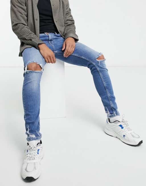Bershka super skinny jeans with rips in light blue Very well made.
