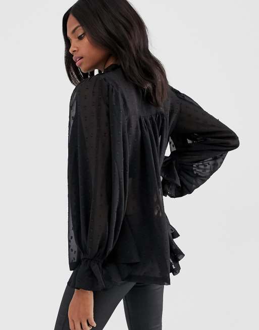 ASOS DESIGN Blouse transparente ouverte manches longues et plumetis Very well made.
