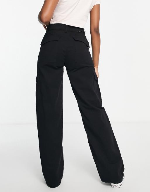 Pull Bear high waist wide leg cargo pants in black Very well made.